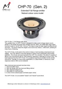 Home / Build Your Own / Audio components / Speaker Drivers / Full range drivers / Markaudio / CHP-70 Generation 2 (pair) / CHP-70_Gen.2_natural_Eng