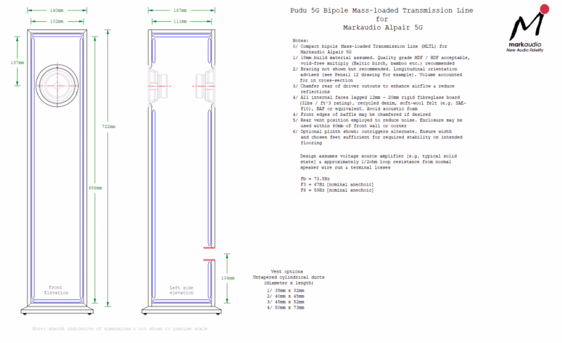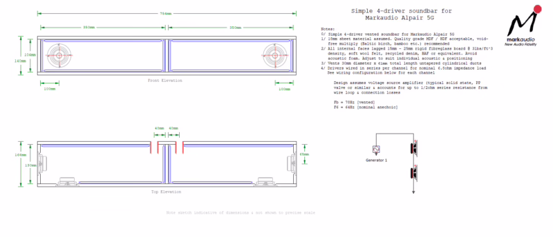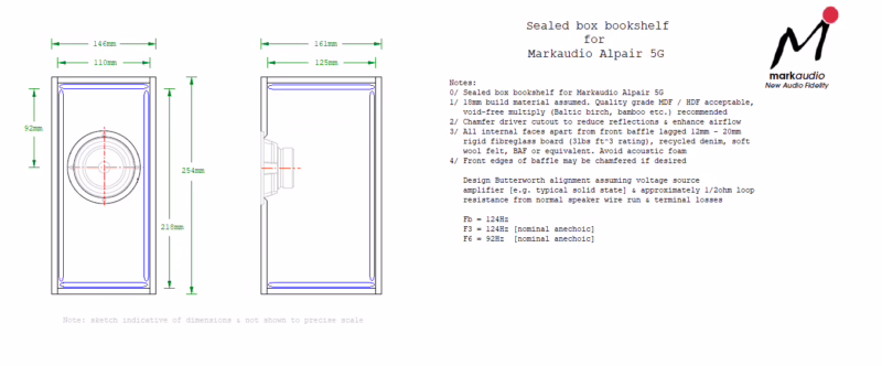 As usual Scott Lindgren has produced loads of plans for Markaudio using this driver. This driver is physically a little different to the Alpair 5.3 before it. It is 0.4mm smaller across it’s diameter and the frame is 5mm where the former was 6mm. It will physically fit into holes you cut for the previous driver with a shim (or extra thick gasket). Beware tough the motor system is quite a bit deeper so if you have little clearance at the back of your cabinet, take care that if fits first. Acoustically it will work in most applications you previously had the 5.3.